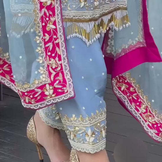 • Work: Embroidery & Sequin Work with Pearl Handwork and Fancy Lace Border